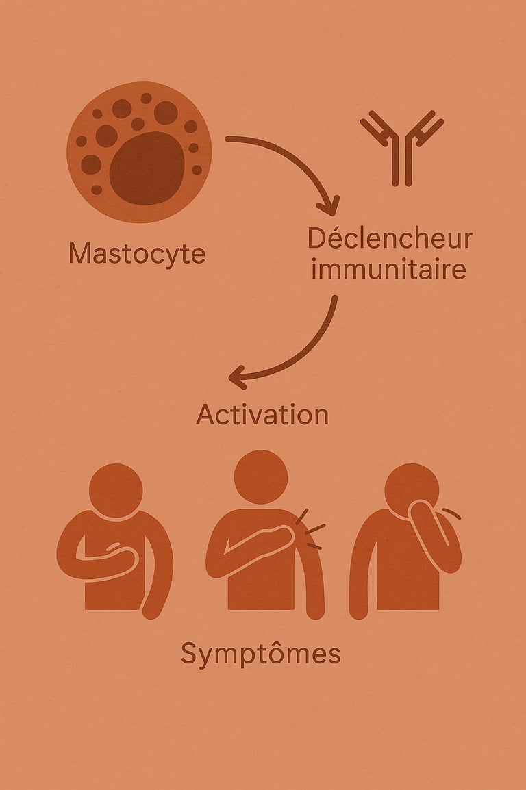 Il faut tout d'abord comprendre ce qu'est un mastocyte. Dans le cadre du SAMA, c'est une cellule du corps qui réagit trop souvent et trop fort, en libérant des substances comme l’histamine, ce qui cause des symptômes inflammatoires.